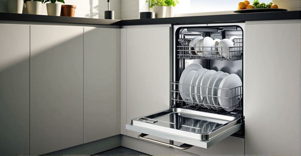 Een handig kenmerk van deze vaatwasser is de PowerClean technologie. Door krachtige spuitmonden achterin worden zelfs aangekoekte pannen en schalen goed schoon. Je hoeft je vaat niet meer voor te spoelen, wat tijd bespaart. Na de wasbeurt opent de deur automatisch op een kier, waardoor de warme lucht kan ontsnappen en je vaat sneller droogt.